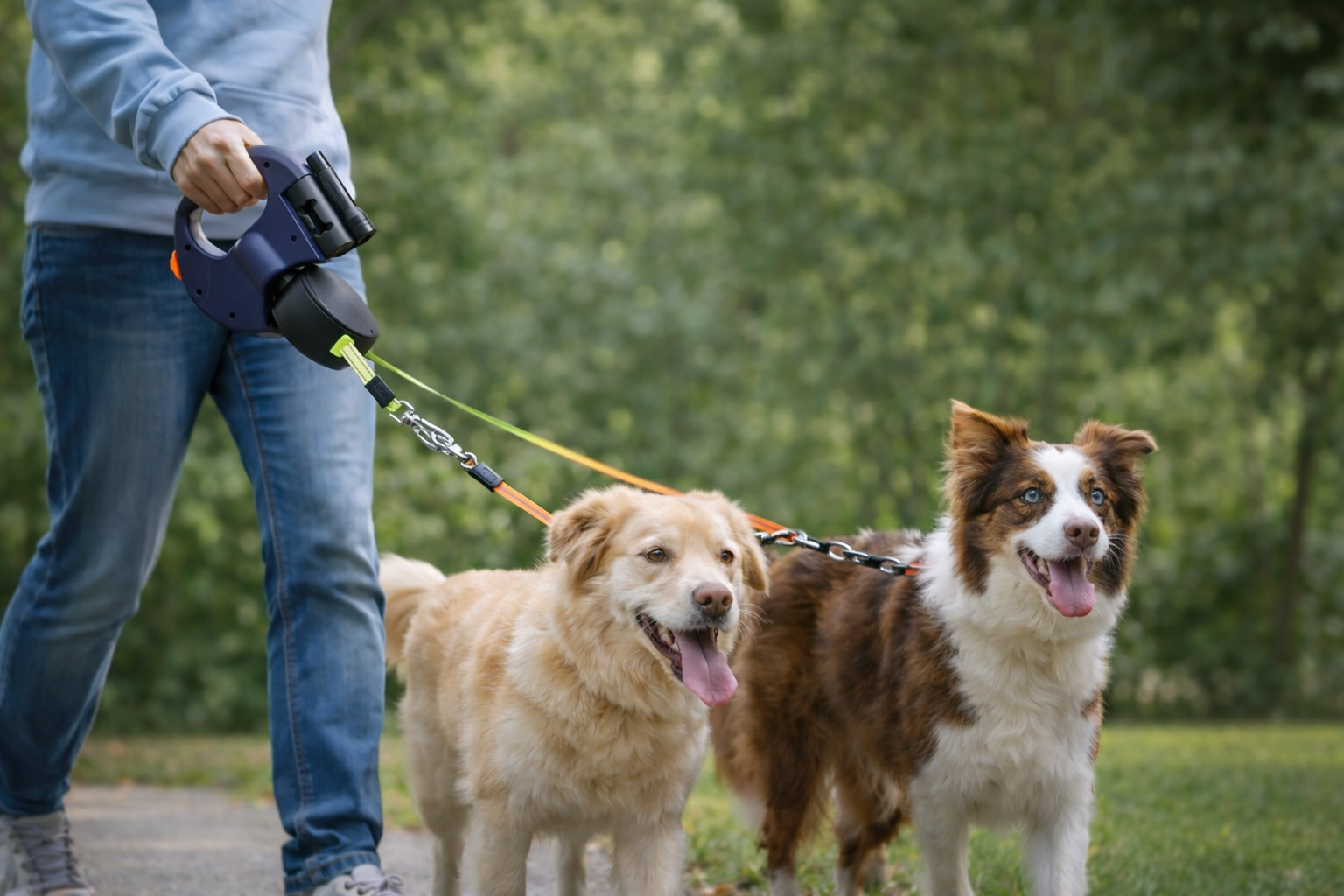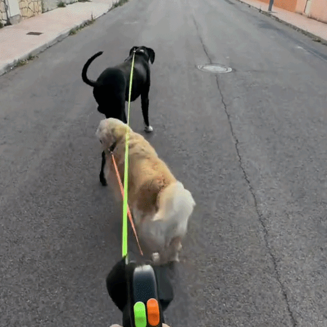 Gestisci due cani contemporaneamente con una sola mano, mantenendo controllo e libertà di movimento in modo semplice e sicuro.